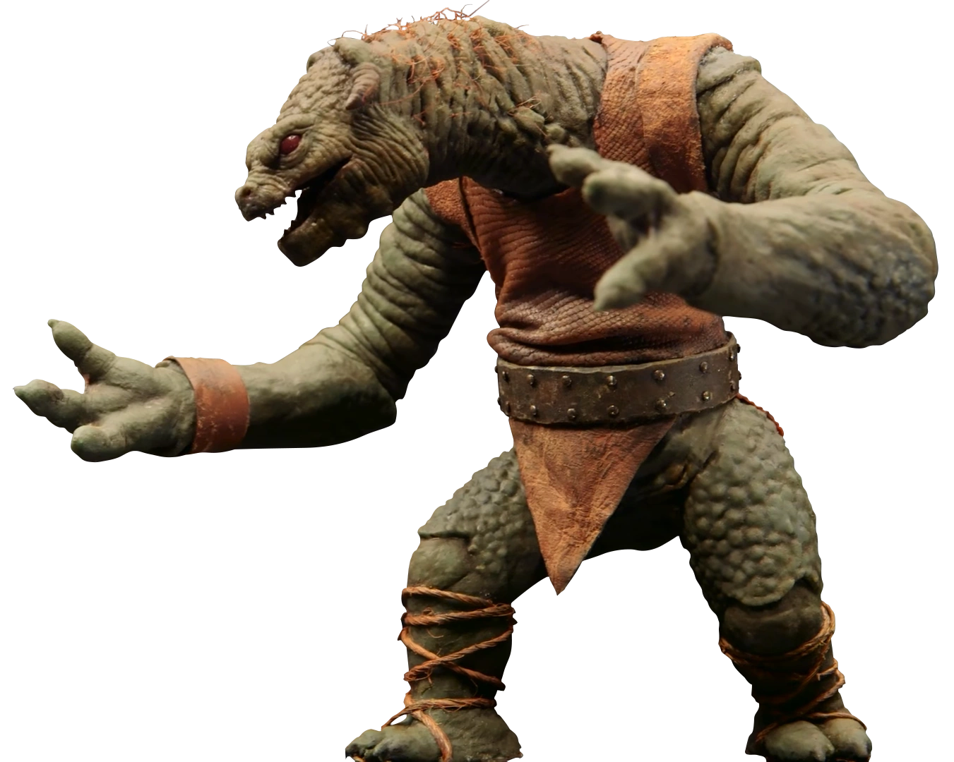 Mantellian Savrips were a sentient, but technologically primitive, reptilian species from the planet Ord Mantell whose appearance was used for one of the holographic pieces in the game dejarik.[1] Large in size,[3] they had gray skin and horned heads with red eyes, attached to their upper torsos by long necks partially covered in strands of orange hair.[2] Mantellian Savrips had a pair of long, powerful arms that terminated in claw-tipped, four-fingered hands and two short legs with three-toed feet.[4]