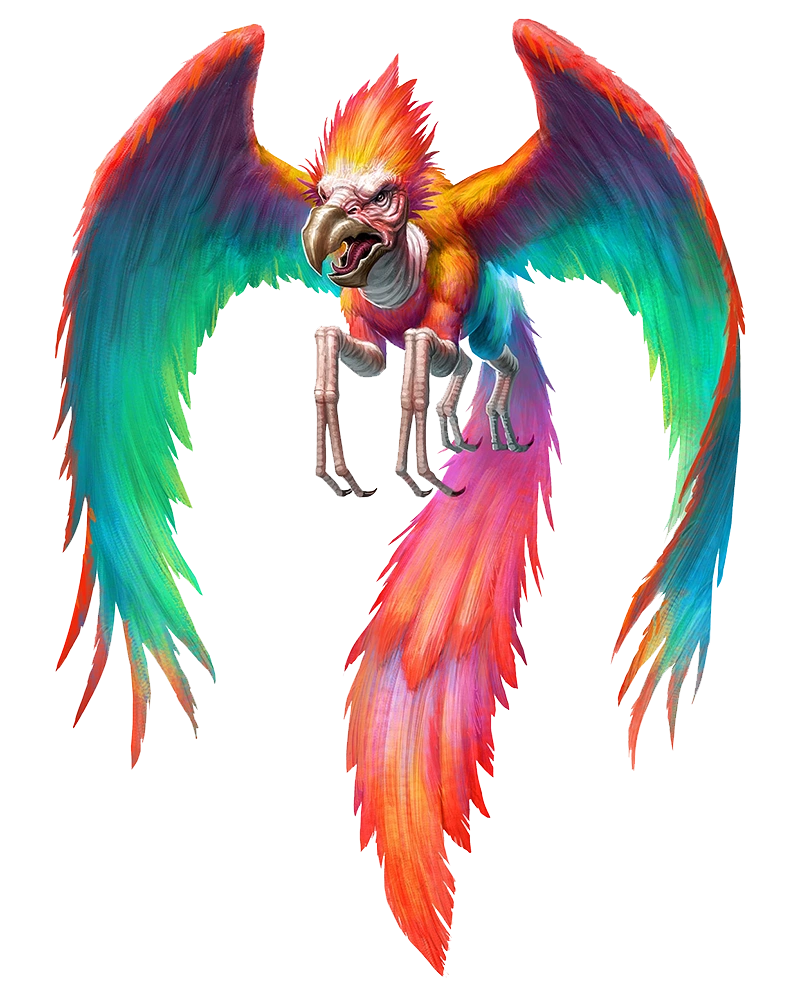 Mantellian flutterplumes were carnivorous birds native to the Mid Rim planet Ord Mantell. They had four legs that ended in sharp, curved talons, and their bodies were mostly covered in multi-colored feathers. The creatures were known to scavenge their homeworld's wastes and Scraplands and were a nuisance throughout the planet's history for attacking injured soldiers as they waited on medical aid. A sizable population also lived on the planet Alderaan before its destruction.