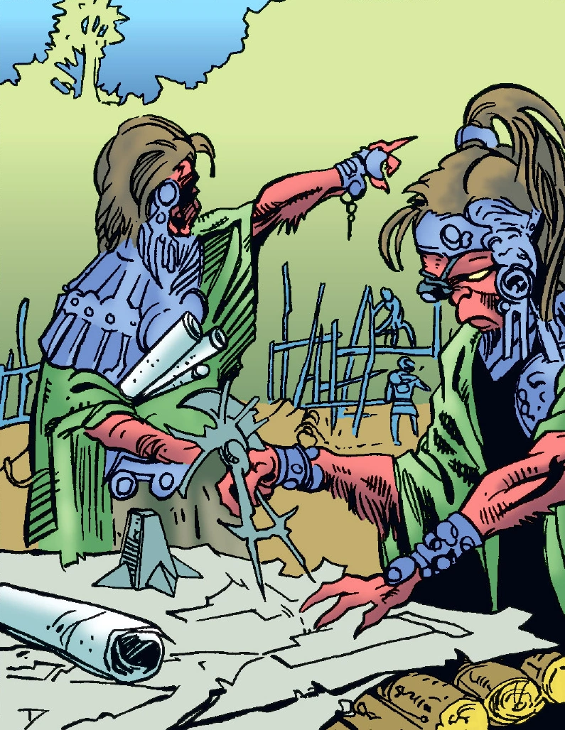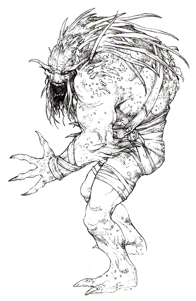 The Massassi under the command of Naga Sadow that relocated to Yavin 4 after the Great Hyperspace War underwent alchemical alterations under the supervision of Sadow. These individuals and their descendants became more hunched and monstrous than the original Massassi species, and were gradually considered more like savage brutes than the warriors they once were. At this point, they became large creatures with sharp claws and grotesque fin-like growths on their head and back.[1]