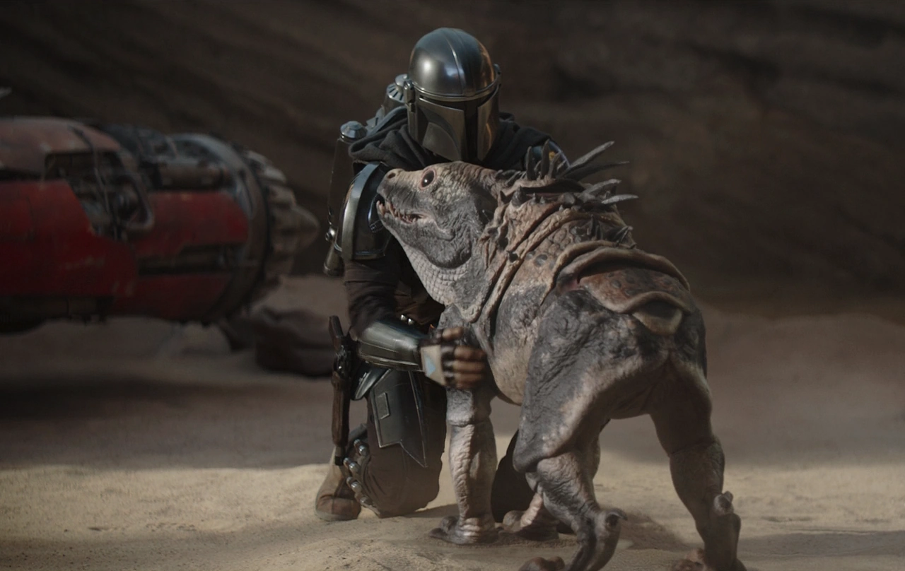 Din Djarin tames a massiff