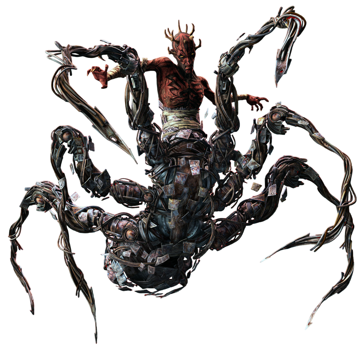 However, through his hate and rage, Maul managed to survive being cut in half as his top half fell down the reactor shaft and into a trash container.[20] A combination of his Nightsister magicks, Dathomirian physiology and Sith tenacity served to keep him tethered to life even as his sanity began to leave him.[28] Maul's shattered body was dumped on the junkyard world of Lotho Minor,[44] where he lived in the bowels of the planet. There he utilized discarded metal to fashion for himself a six-limbed apparatus that allowed him to walk again.[45]