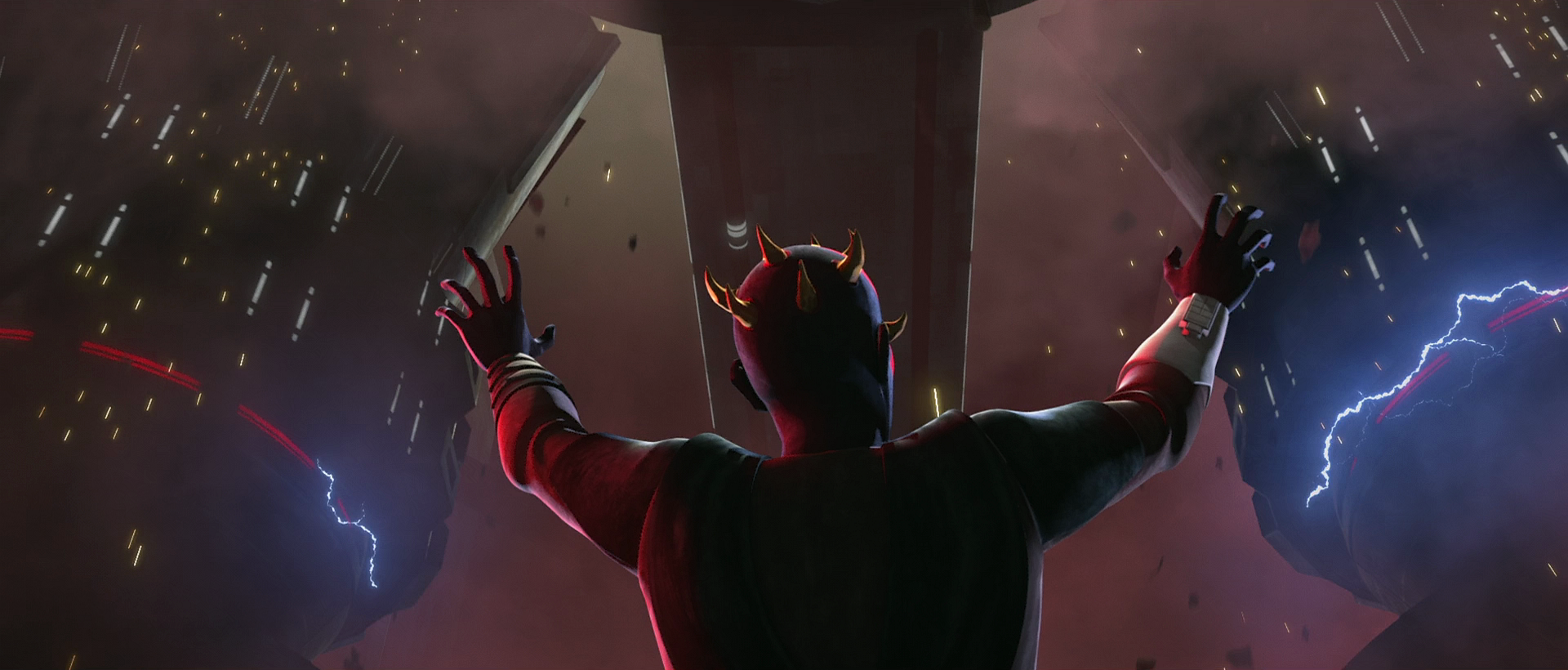 After killing Peiro, Maul and Sidious returned to Malachor to expand his Sith training. During his time on Malachor, Maul breathed the ashes of the long-dead Sith and had a Force vision. In his vision, Maul was a Jedi and saved a fellow Zabrak from a creature. Maul was invited to dinner with other Zabraks to thank him. Maul, disgusted by the Zabraks' idolization of the Jedi, became a Sith and beheaded the entire group. After his vision ended, Maul was praised by his master, and Maul realized that it would take more than his rage and emotions to destroy the Jedi.[37]