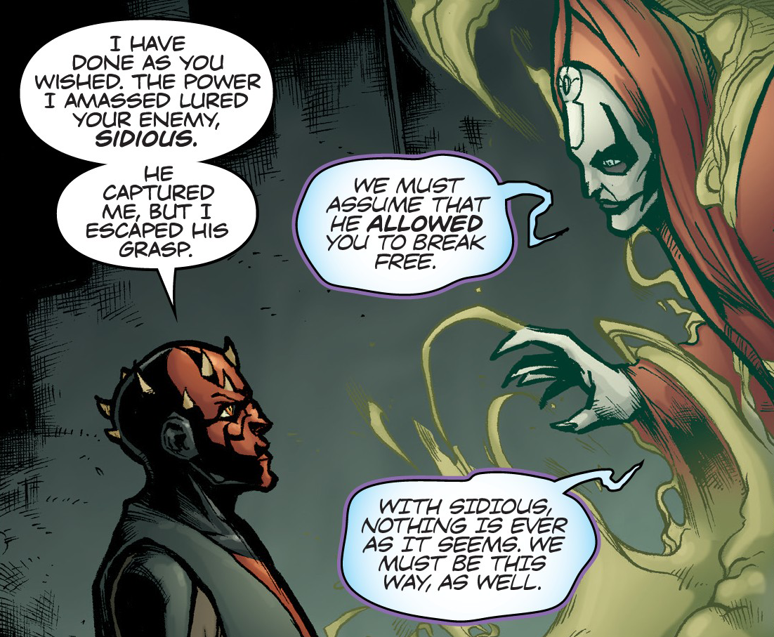- ―Mother Talzin recounts how Maul became Darth Sidious's apprentice