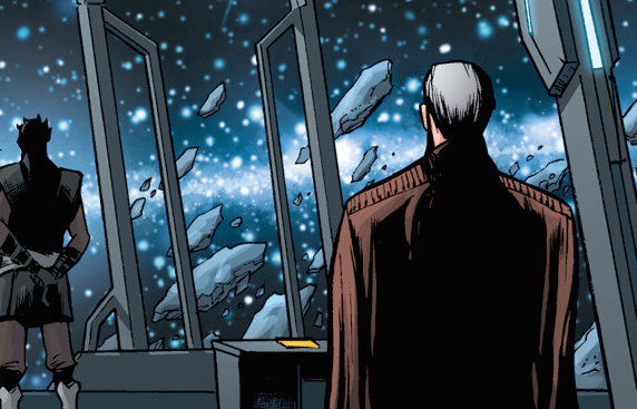 On the moon's surface, Maul, Kaitis, and his bounty hunters survived the crash. Maul and his bounty hunters saw that Xrexus was sending ships after them and split up; Maul and Kaitis would lead the hunters away while Bane, Sing, and Vorhdeilo would take a ship from them. When they were surrounded by the hunters, Maul gave Kaitis her lightsaber, and the two of them fought the hunters together. After defeating the hunters, Maul and Kaitis prepared to fight each other.[35]