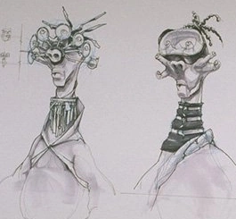 Early concept art by Jay Shuster depicted Mawhonic as a never before seen species.