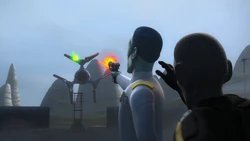 Though the rebels managed to capture the Dome and lure the Imperial garrison aboard, Thrawn devised a counter-strategy which involved Rukh and his Imperial forces sabotaging the Dome's shield generators. This enabled Thrawn to bombard Lothal's Capital City in a successful effort to force Ezra to meet him to discuss his unconditional surrender. As a commander, Thrawn maintained an iron resolve when confronting the rebels and preferred to set the conditions of the battlefield.[65]