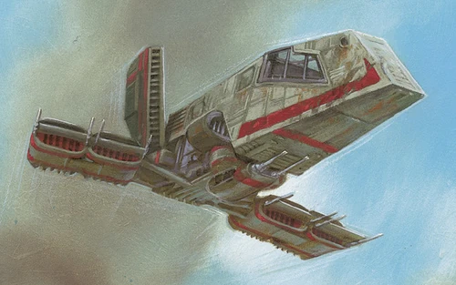 The ship was introduced in the new Star Wars canon in the 2019 board game Star Wars: Outer Rim as a ship that could be purchased by players as an upgrade from their starting ship.[3] The ship was originally introduced in the Star Wars Legends continuity as the transport of Kyle Katarn, the playable character of Star Wars: Dark Forces, a first-person shooter video game developed by LucasArts and released in 1995.[4]