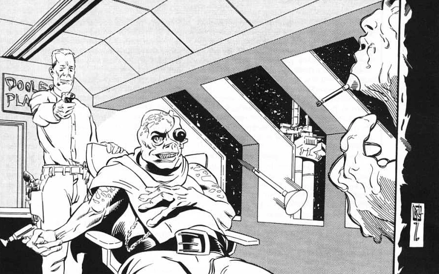 After the death of Palpatine at Endor in 4 ABY, Doole staged a revolt against Imperial control of Kessel; overthrowing the guards and successfully taking control of the planet. He then installed Skynxnex as his second-in-command. After the revolt, Doole discovered a dead rancor in the prison which had been starved to death. Doole pitied the fate of the creature and of his plans for it, as he planned to feed the Imperials to it. He sent them to the mines but tortured the former head of the prison and froze him in carbonite, displaying the man's desiccated corpse in his office.[3] Also around this time, 5 ABY, Doole was responsible for the deaths of Kyp Durron's parents, an act that would come back to haunt him.