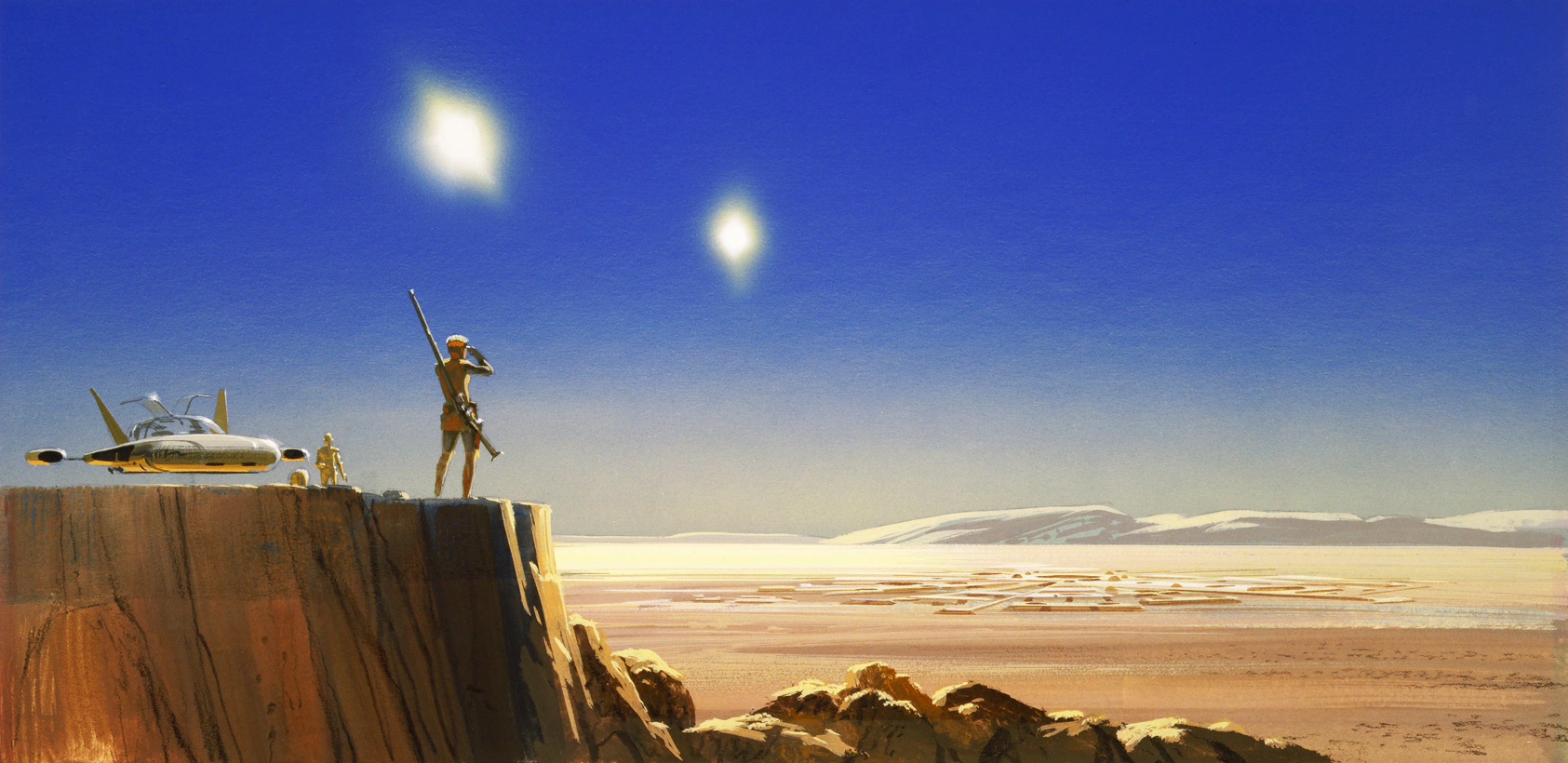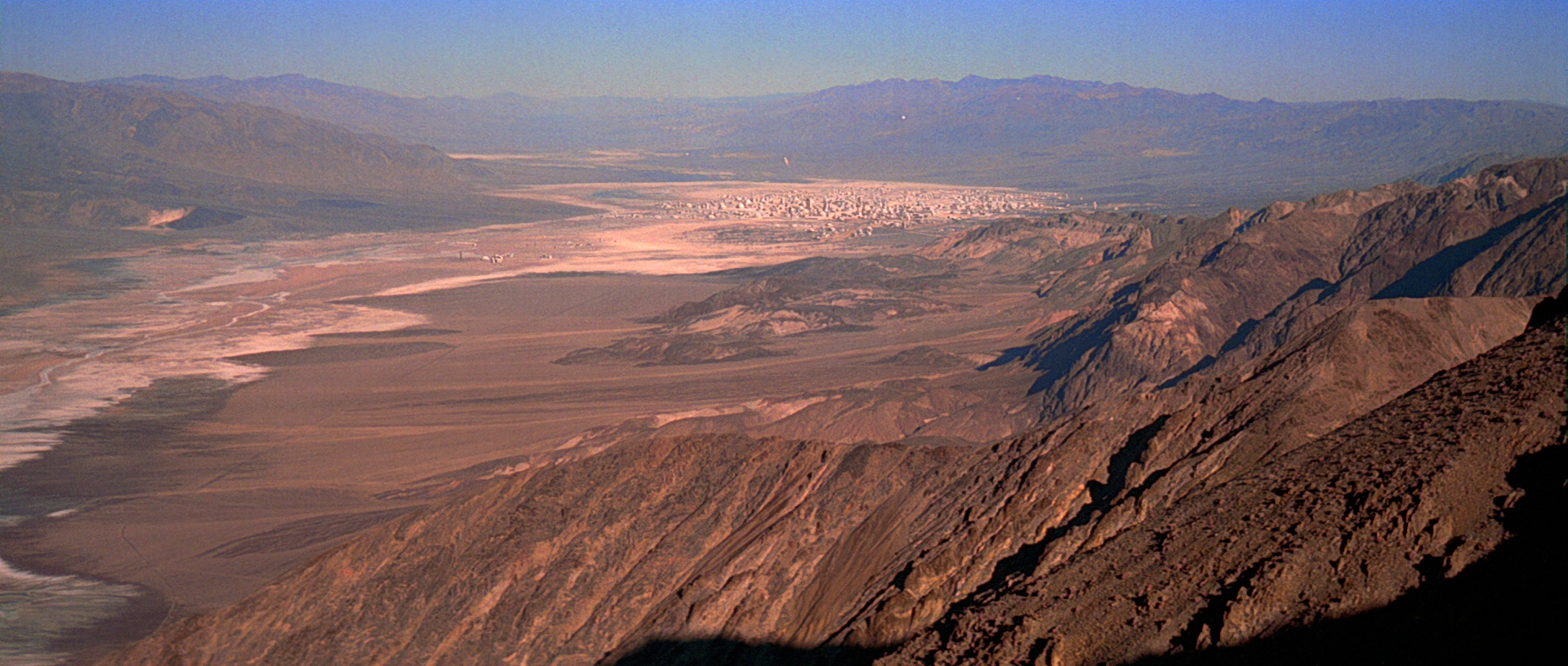 The real-world locations for Mos Eisley are mostly in Djerba, Tunisia with the establishing shot on Dante's View in Death Valley looking toward Furnace Creek.