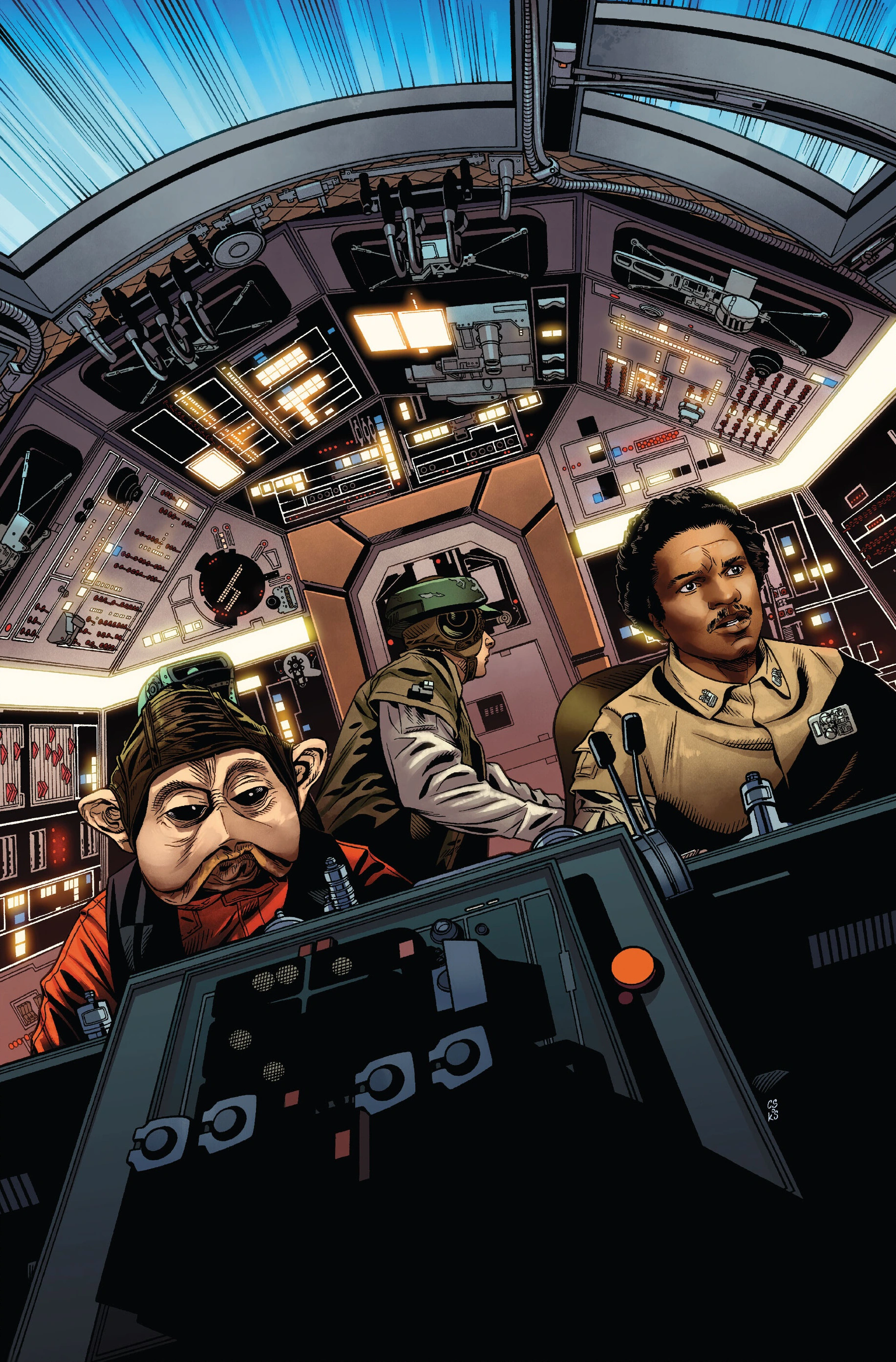 Nunb and Calrissian in the cockpit of the Millennium Falcon, just before the Battle of Endor.
