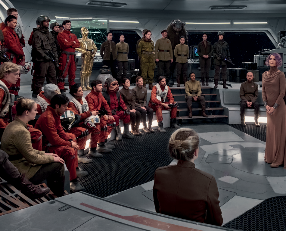 Nien Nunb on the Raddus, listening to Admiral Holdo.