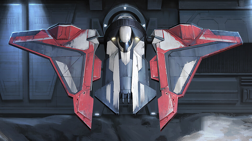 The Nightbrother was a customized Kom'rk-class fighter/transport[3] of the Kryze Gauntlet ship variant.[4] Customized with a black and red color scheme, the starfighter featured rotating wings, a large hull, and was armed with two forward and two rear laser cannons.[3]