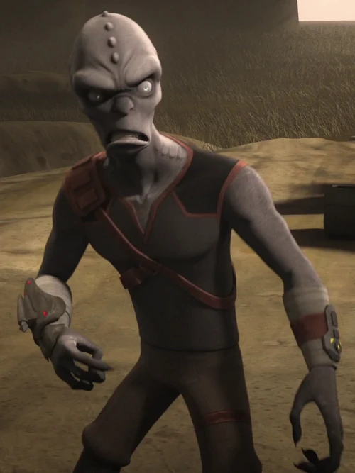 One Noghri was present on Wecacoe when Captain Cassian Andor traveled there to extract Imperial security protocols.[5] Rukh was a male Noghri assassin who often worked for Imperial Grand Admiral Thrawn.[6] Because of their strong sense of smell and advanced combat skills, Noghri were often employed as trackers and assassins.[3]