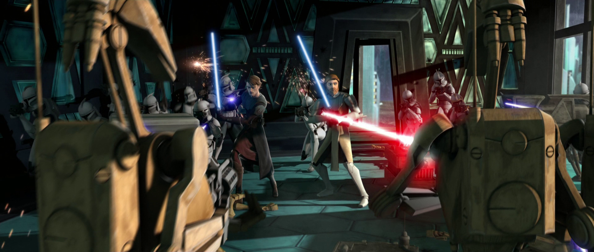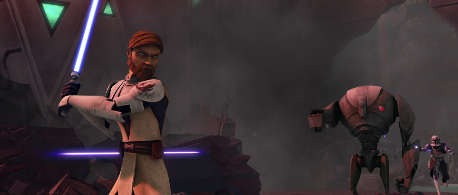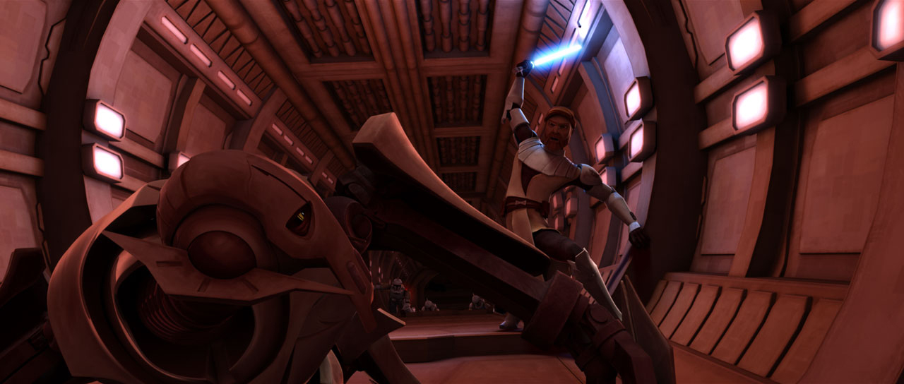 General Kenobi destroying battle droids in his Jedi Commander Armor
