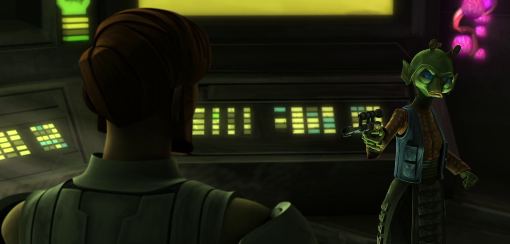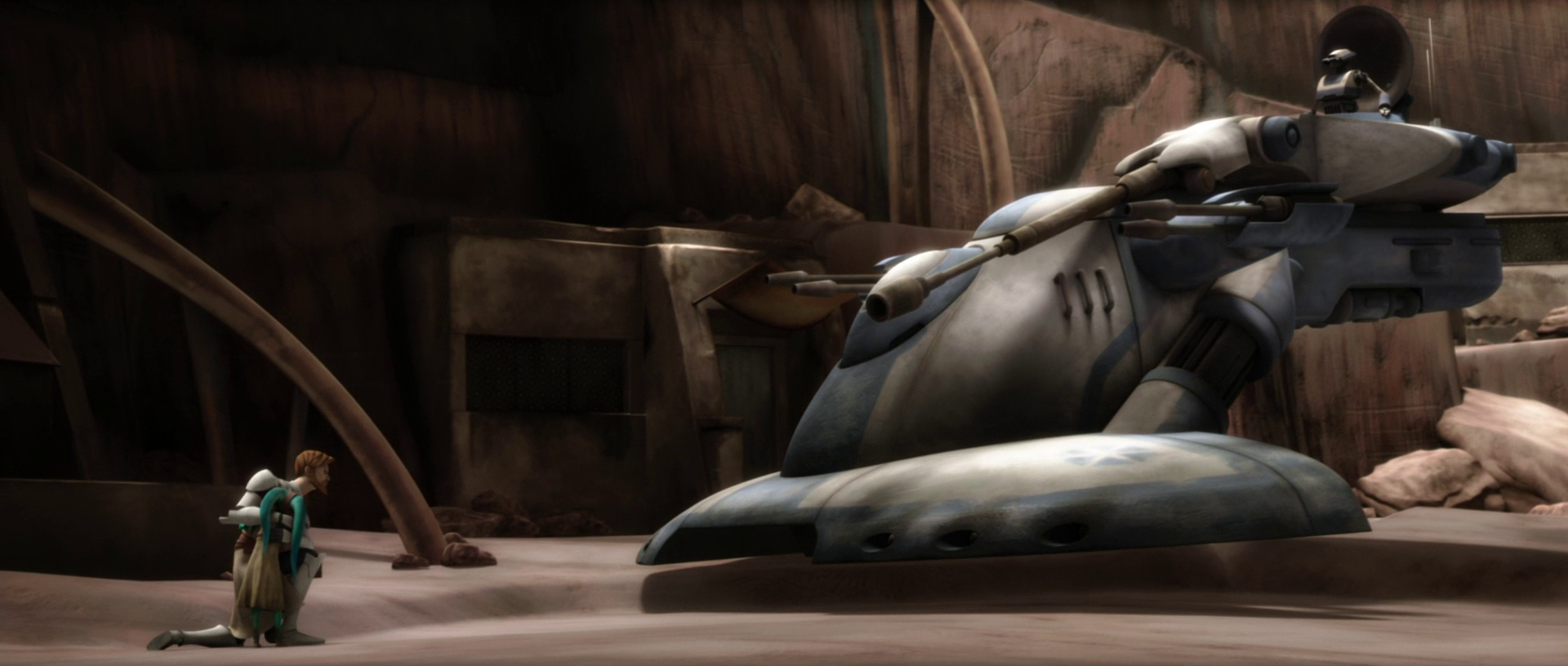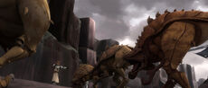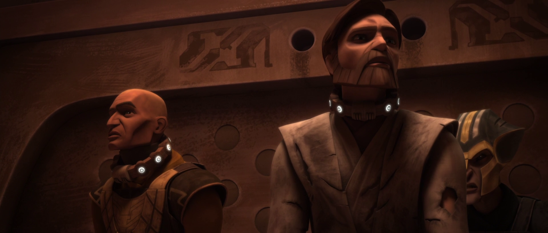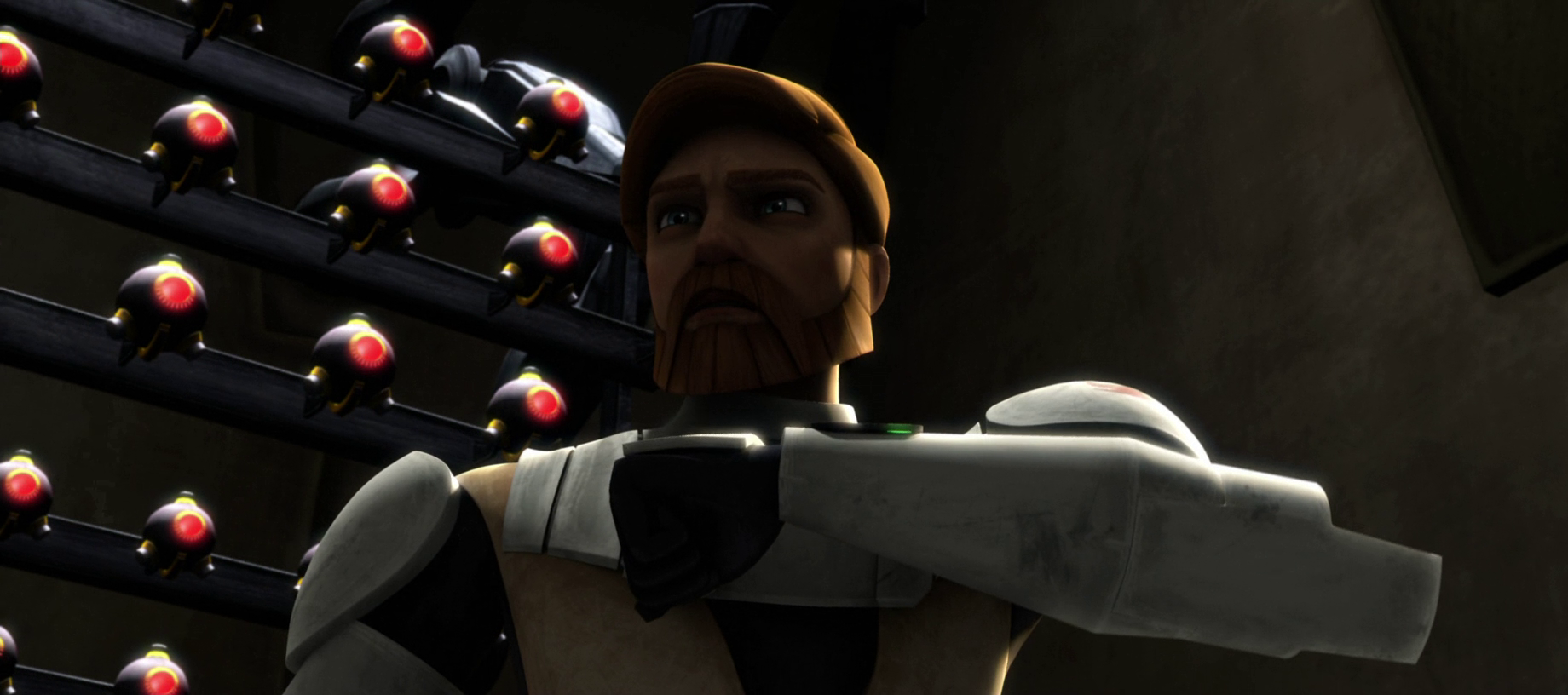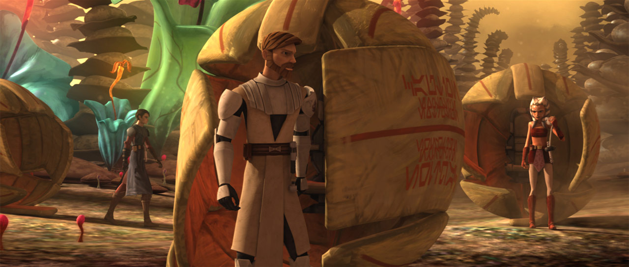 Years later during the Clone Wars,[28] Kenobi and Kryze still had feelings for each other, but found themselves on opposing sides. Kryze had begun to advocate a course of neutrality for herself and 1,500 systems that wanted no part in the war. Meanwhile, Kenobi defended the use of military action to end the conflict with the Separatists, including a military presence on Mandalore to protect it from the Death Watch. As such, their inability to express their feelings led them to bicker relentlessly about their conflicting philosophies. Only when forced into action did their camaraderie return. When Kryze was taken hostage by Senator Merrick, she confessed that she had always loved him. Kenobi, despite the situation, confessed that he too loved her and would have left the Jedi Order if she asked it of him. Despite their confessions, Kenobi and Kryze continued with their responsibilities as peacekeepers.[30]