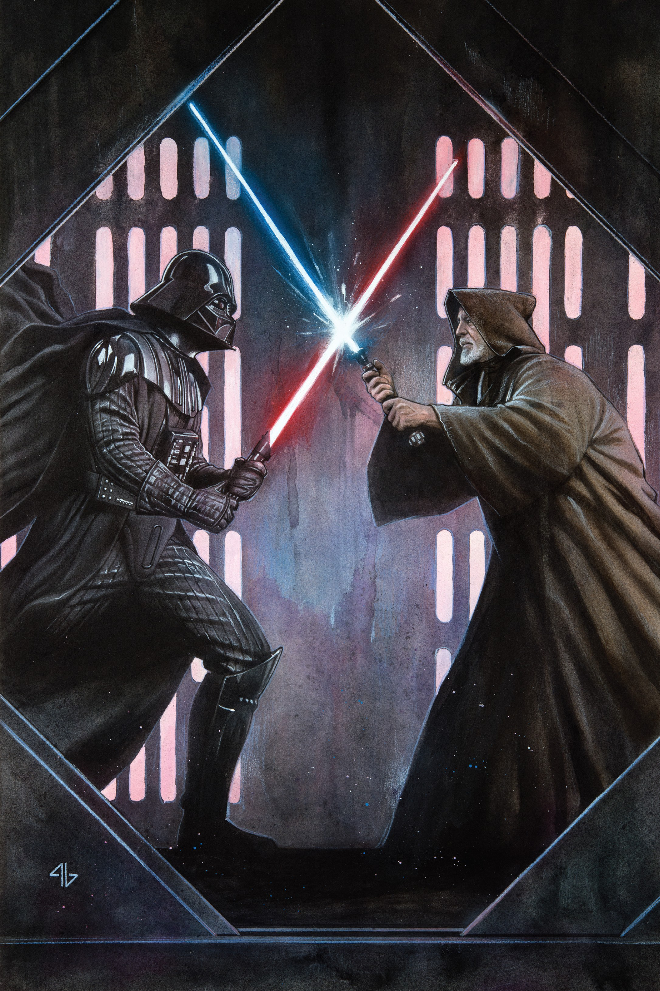 A few years later, during his rematch with Vader on the first Death Star, Kenobi proved formidable enough to hold his own against the Sith Lord for a short time. However, Vader's cautious but relentless assault ultimately overwhelmed Kenobi's defenses, and he was forced to begin retreating. Ultimately, he chose to become one with the Force rather than continue the fight and in doing this, he taught both of his Skywalker students one final lesson.[4]