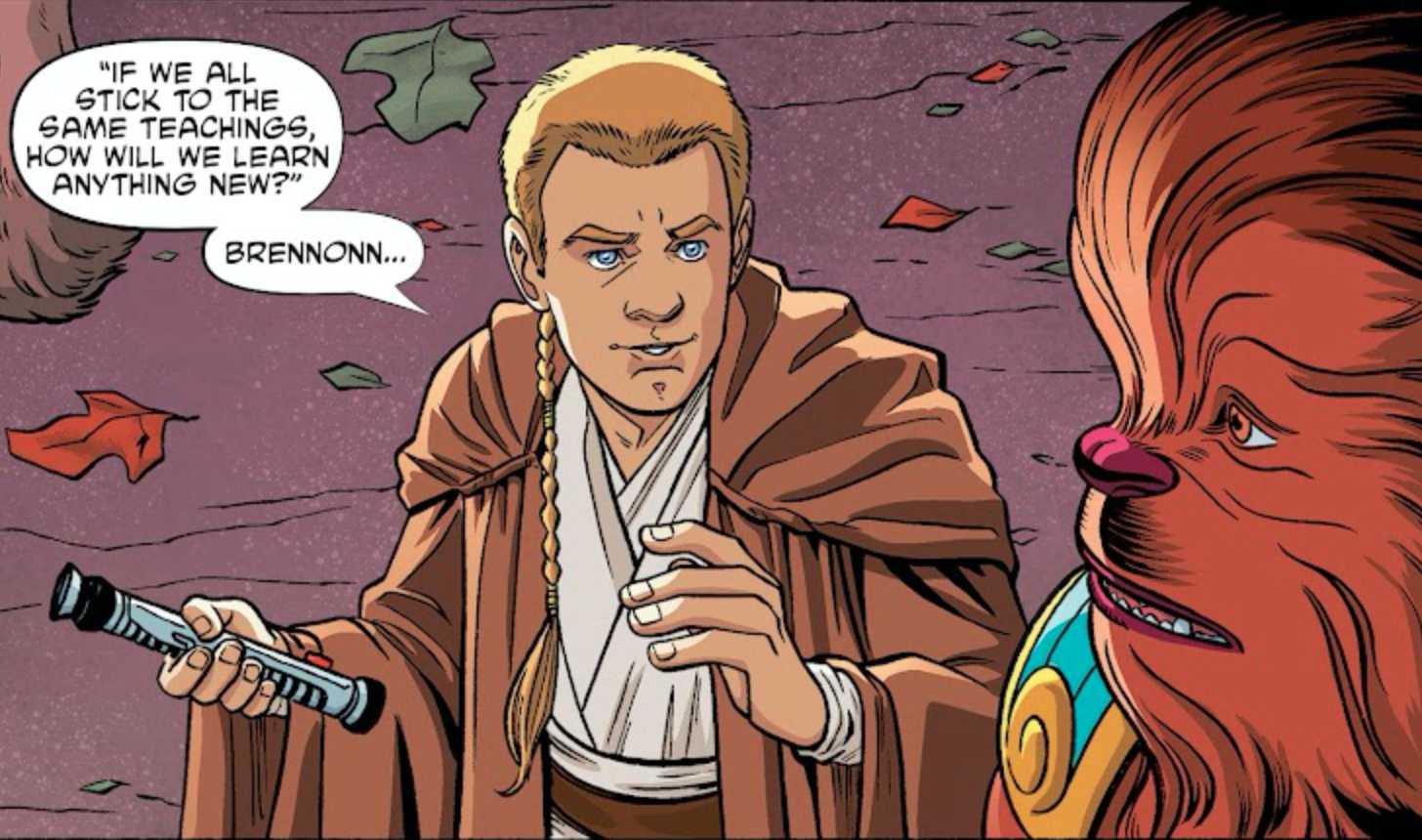 At various points, he considered the fact that Jinn could be kicked out of the Order and wondered what would happen to him if such a case were to occur.[17] The two later came to realization that Yoda intentionally placed Kenobi with a maverick master in the hope that he would rebel in the only way possible: by attempting to become a model Jedi.[16]