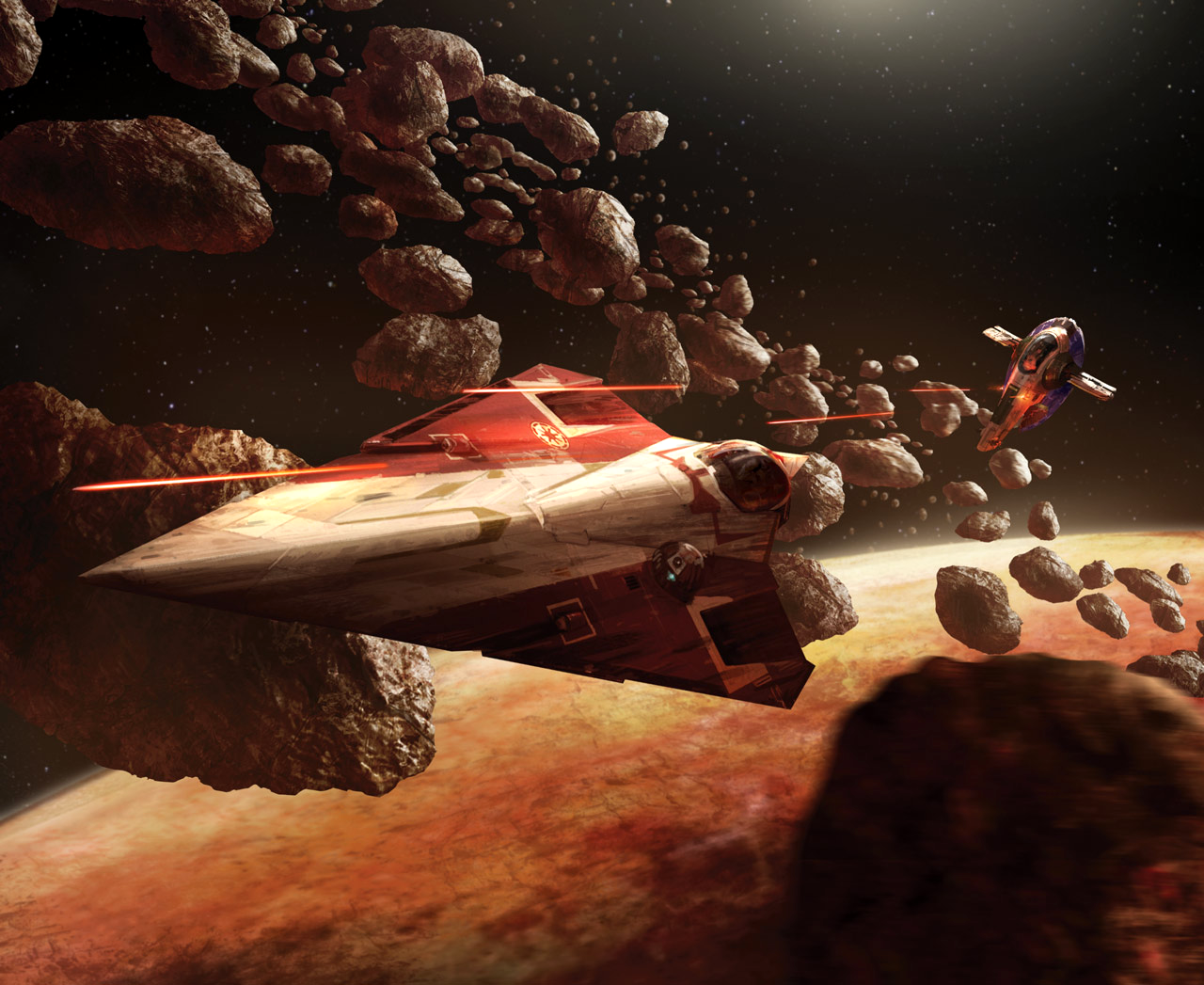 Despite his dislike of flying, Kenobi was an excellent pilot. During the Clone Wars, he led many attacks from the cockpit of his Jedi starfighter or his Jedi interceptor, proving to be an outstanding pilot when navigating through an asteroid field in pursuit of Jango Fett's ship and evading his seismic charges unscathed.[36] In fact, Kenobi had once rather enjoyed flying, prior to an incident during and his Qui-Gon Jinn's mission to Pijal.[16]