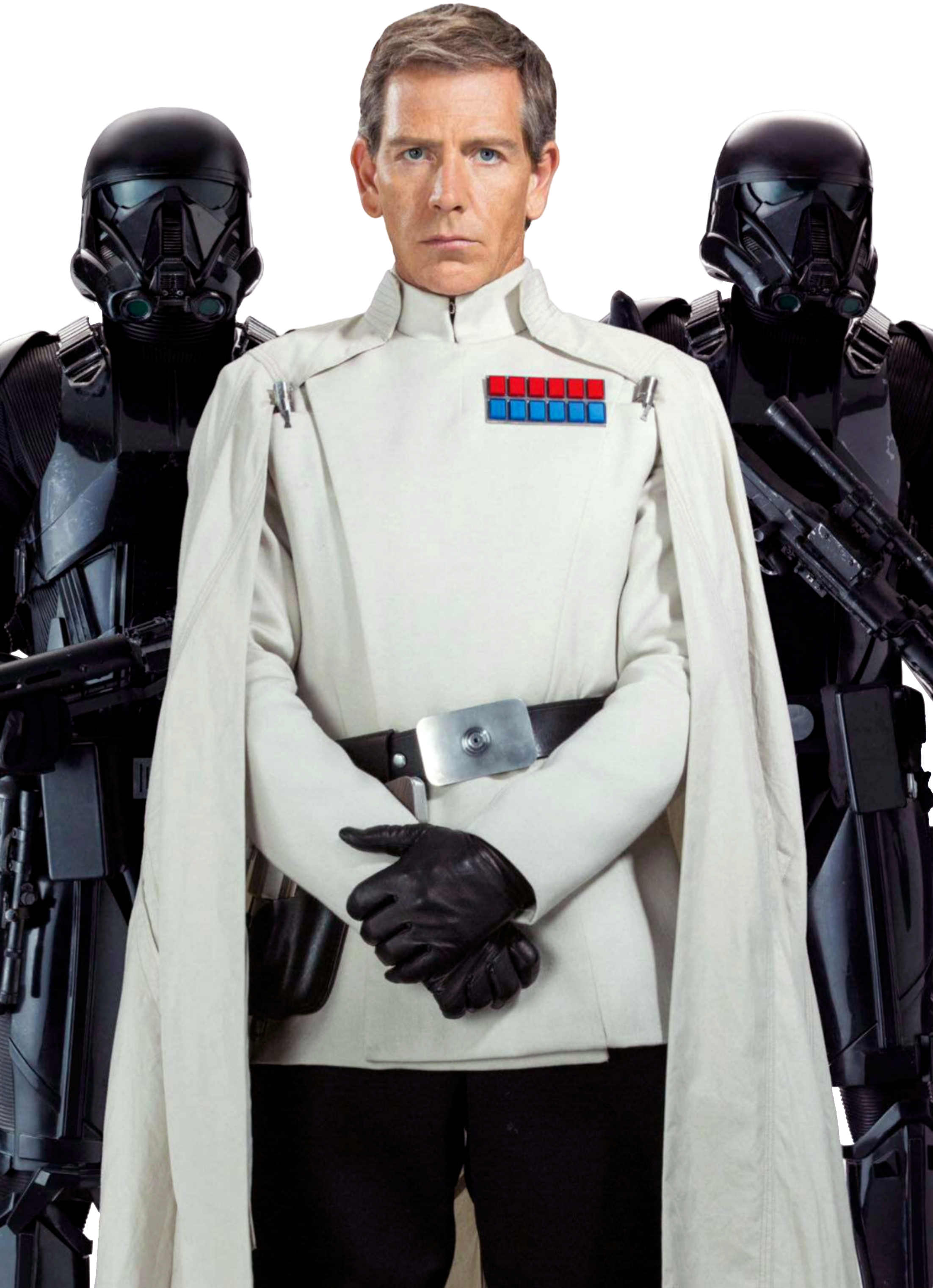 Director Krennic, flanked by his death-trooper bodyguards