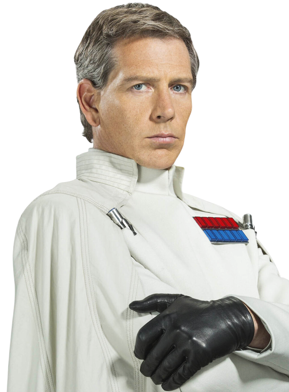 Orson Krennic was a human male with short gray hair, blue eyes, and light skin. He wore a white Imperial military uniform,[4] similar to those used by other members of the ISB, like Colonel Wullf Yularen,[42] with an unusual addition of a white cape not commonly seen on other Imperial officers.[4] An ambitious officer,[12] Krennic sought to earn the favor of Emperor Palpatine,[4] using his knowledge of the Empire's system to manipulate it and ascend in the Imperial hierarchy. He was known to be unpredictable and volatile. During his time as part of the Futures Program, Krennic was renowned for his "nocturnal carousing" and partying, as well as frequently coming to Galen's rescue to ward off his tormentors. He had lofty aspirations and a high opinion of himself and his capabilities, feeling that he deserved respect within the Empire's ranks. Even though he regularly manipulated and deceived his friend, Krennic did believe he was helping Erso, as he believed he was giving Erso the chance to become a truly famous figure.[5]