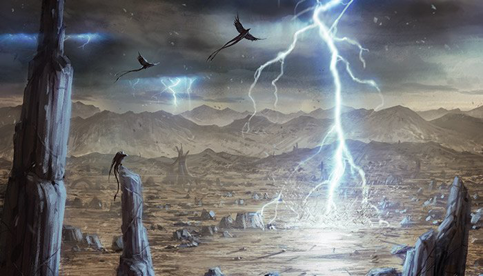 A lightning storm rages across the barren surface of Ossus