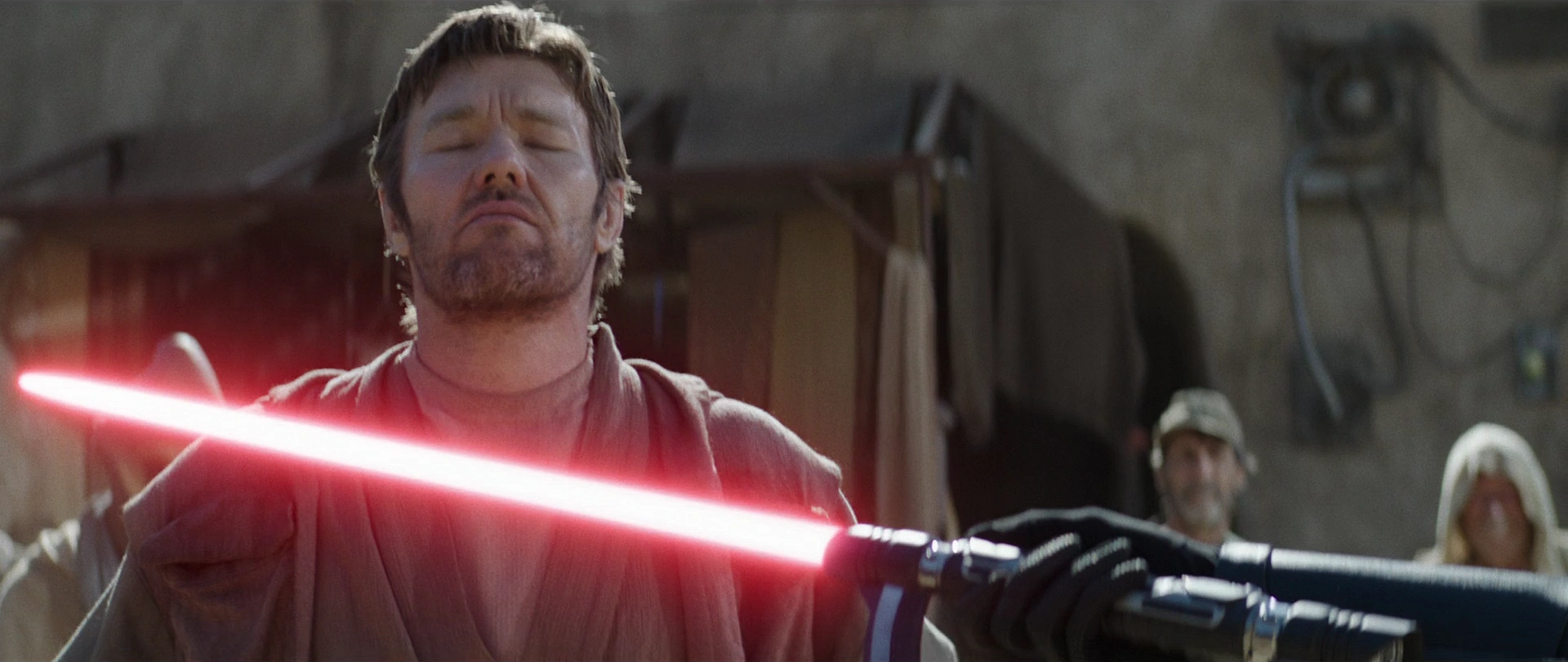 Fearing that Kenobi will lead to Skywalker's death, Lars tells the Jedi to stay away from the boy.
