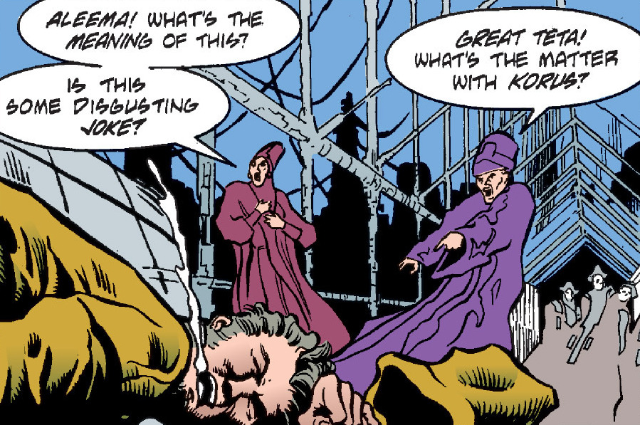 Aleema and Satal held court in their newly acquired palace, the Iron Citadel. From there they would establish their base of operations. Their takeover had been a success; six of the seven Tetan planets were subdued, and nearly all of the planetary leaders swore fealty to the Krath. Satal saw to the complete leveling of three cities on Kirrek as Aleema located several of the insurrectionists on Empress Teta, and had them wiped out. However, in spite of the growing Krath dominance over the system, Empress Teta was the only world that continued to offer any resistance. While discussing plans for permanently ending the revolts on the Krath homeworld, Korus, whose face had been hideously disfigured by Aleema's sorcery, approached with wine for the Krath leaders. Reduced to nothing more than a lowly servant, Korus was continually berated by the Ketos. As he was attempting to serve Aleema her wine, he tripped, and spilled it all over her new gown. Enraged, Aleema reached out with the dark side and burned Korus alive with her sorcery. When Satal asked her what she had done, Aleema admitted that she was not quite sure, but she liked it nonetheless. Korus was dead, and the last of Keto's old regime was erased. Now all that was left was for the Krath to gain military dominance over all of Empress Teta's seven worlds, and they immediately went to work in bringing that to pass.[3]