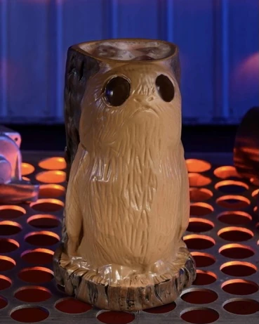 At the theme park attraction Star Wars: Galaxy's Edge, porg items are sold at the out-of-universe Creature Stall.[20] Souvenir porg mugs are included with the purchase of a Cliff Dweller at Oga's Cantina.[22]
