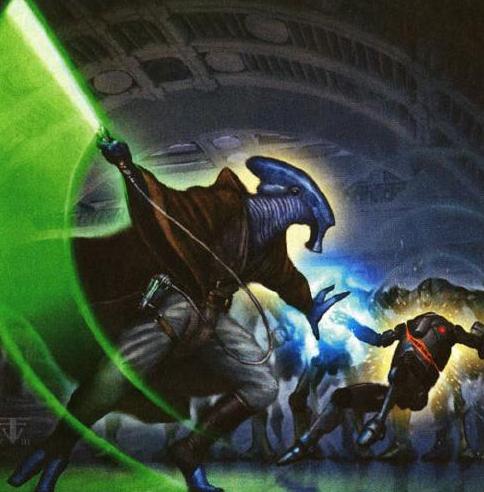 A Selkath Jedi with a retrosaber during the Clone Wars.