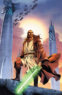 While other Jedi focused on meditation to try to understand the future, Jinn lived in the moment.[5] He believed that one's focus on the future shouldn't compromise their concentration on the present and believed in trusting one's instincts.[4] Although he was unconcerned whenever someone claimed he was a coward, Jinn came to have a distaste for how many people, even people on Coruscant, saw the Jedi as warriors and political servants. Although Yoda simply thought that people who could not use the Force would be confused by those who could, Jinn was faced with a great turmoil due to his concerns, as he understood that the Jedi Order's actions reflected who they really were. While the Jedi Council would disagree with his assessment, Jinn believed that the Jedi being based on Coruscant was part of the problem, as it enabled them to become and be seen as a force that served the Republic, even possibly making themselves believe it.[23]