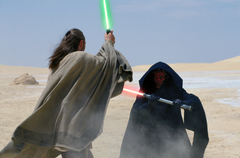 Qui-Gon, moments before his death at the hands of Darth Maul.