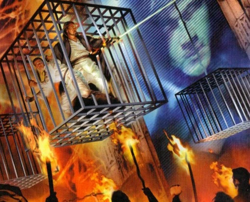 As Dooku and Nod engaged in a lightsaber duel, Jinn, still tied and helpless, cried for his Master to release him. Dooku, however, was too enraged and immersed in the battle and did not hear his Padawan's pleas. Only when he was ready to deal a fatal blow did Dooku hear Jinn's desperate cry and stop his hand. He finally released his apprentice, and they took both Nod and Iridian into custody. The two returned to Coruscant, not speaking a single word on their return journey. After handing the two criminals to Coruscant security, Dooku told Jinn to learn one lesson from their mission—that the day would come when his friends would betray him.[8] Unbeknownst to the Jedi, the plot to replace Annon with Iridian had been secretly instigated by Darth Tenebrous, the current Dark Lord of the clandestine Order of the Sith Lords. The replacement of Annon was to be another step in the Grand Plan, the imperative designed by the Dark Lords to bring the galaxy under Sith control. Although Jinn and Dooku had unknowingly foiled that particular scheme of the Sith, they did not find out about Tenebrous's involvement in Annon's kidnapping.[20]