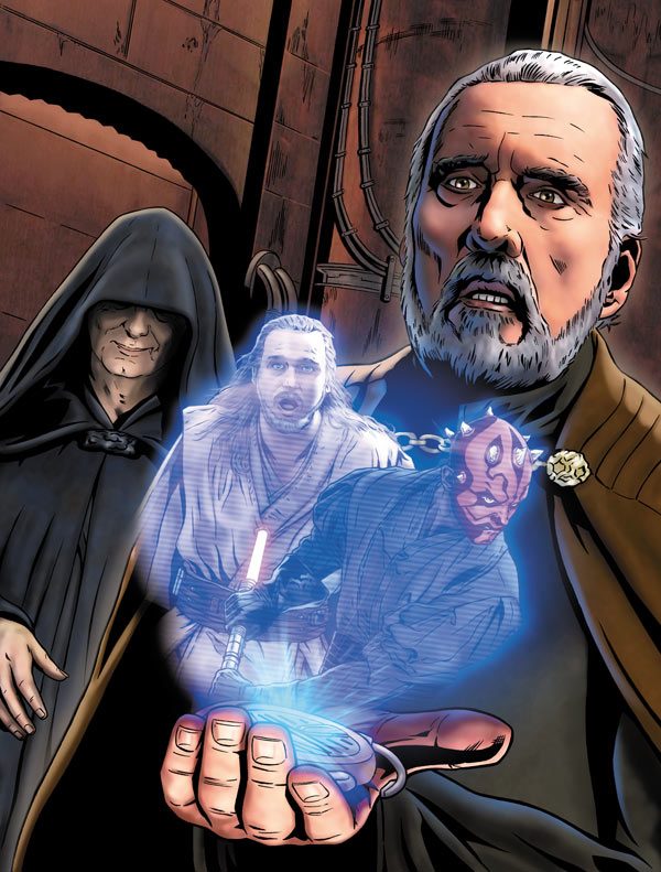 Damask denied Jinn's accusations, stating that Damask Holdings was merely trying to bring progress to the outlying worlds, and any damage done to the worlds in question was just a minor setback. Damask, in turn, said that the Jedi surely must have faced similar dilemmas when trying to uphold the Republic's laws, but their task was easier since they had the Force to rely upon in their decision-making. Although Jinn still did not agree with Damask's methods, he ended the conversation, leaving the Muun to talk to Masters Dooku and Sifo-Dyas. Little did Jinn know that Damask was, in reality, the Sith Lord Darth Plagueis, the current heir to the Order of the Sith Lords. Jinn's accusations of Damask Holdings's operations were actually correct, as discontent in the backwater worlds was one of the goals of Plagueis's Grand Plan.[20]