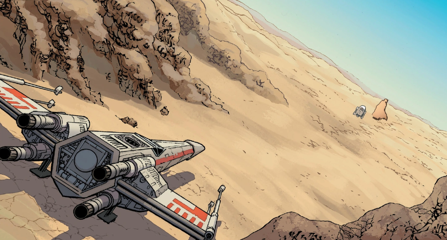 Master and droid tinker with Tano's starfighter above Ryloth.