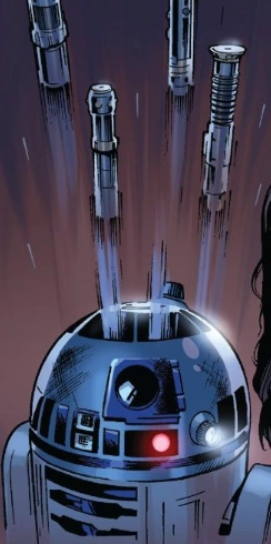 R2-D2, pronounced Artoo-Deetoo and often referred to as R2 (Artoo), was an R2-series astromech droid manufactured by Industrial Automaton with masculine programming. A smart, spunky droid who served a multitude of leaders, R2-D2 was never given a full memory wipe nor did he ever receive new programming, with these factors resulting in an adventurous and independent attitude. Often finding himself in pivotal moments in galactic history, his bravery and ingenuity saved the galaxy on numerous occasions.