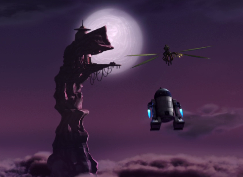R2 using his rockets to escape Ventress.