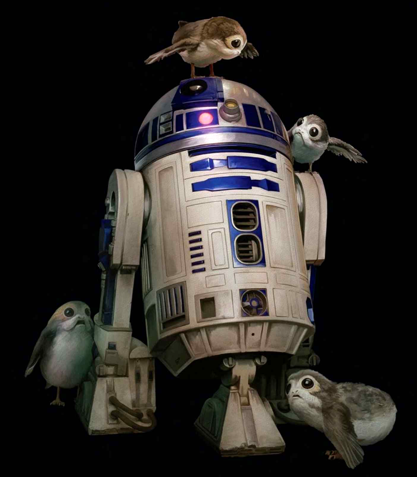 R2 playing host to several porgs
