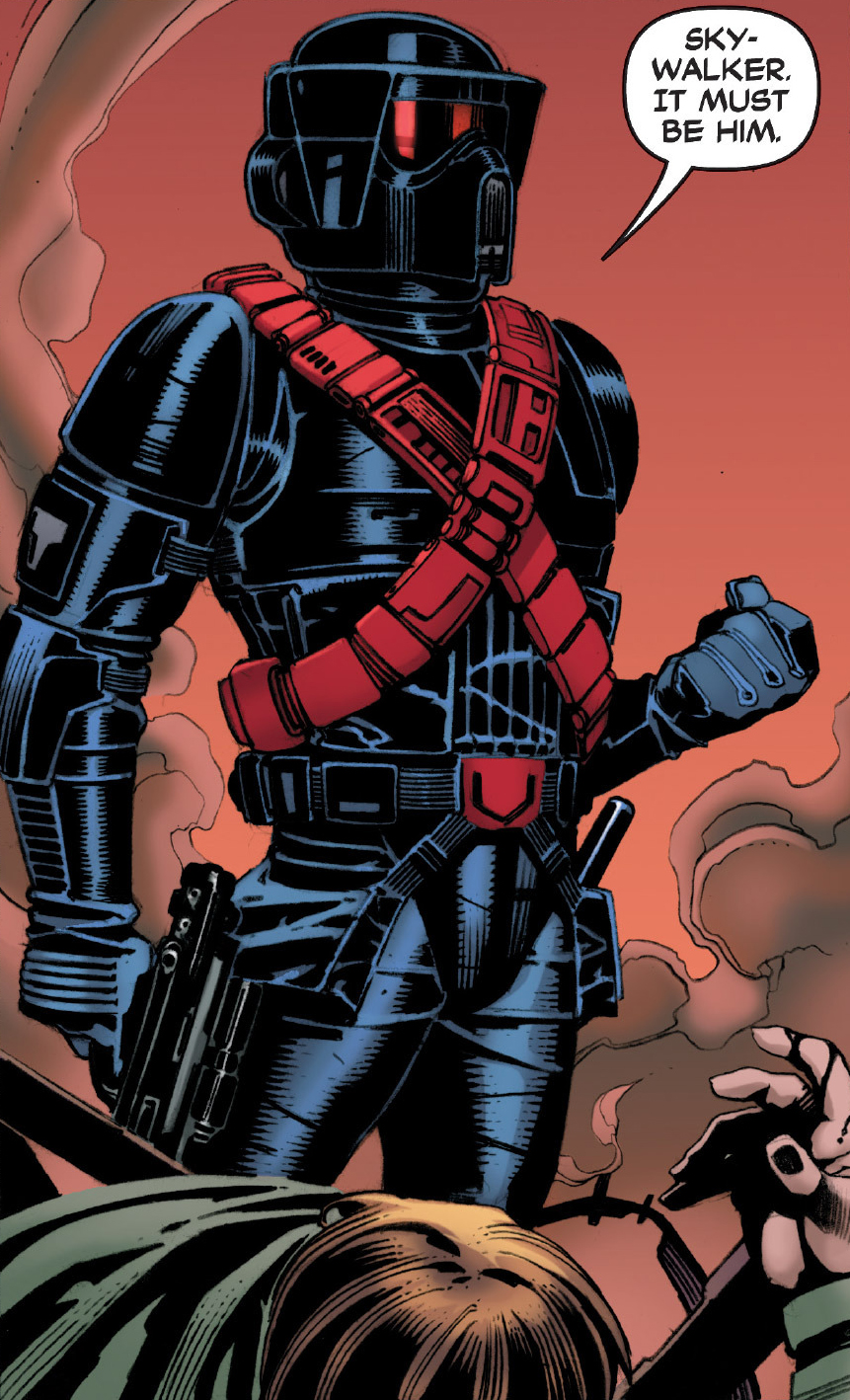 Weir saw that he had lost a large number of troops and decided that they had proved their point; the Empire was still in control. Weir and his men fled, leaving a large part of Coronet in ruin. Ten saw the Imperial retreat and commandeered a speeder bike from a dead scout trooper and followed them. Meanwhile, Wedge and Luke interrogated the captured officer to discover why the Imperials attacked Coronet. Ten followed Weir back to the Imperial landing site, about a kilometer west of the city. As he watched the Imperials load up, Weir sneaked up on him. The General knocked him unconscious with the butt of his blaster rifle.[5]