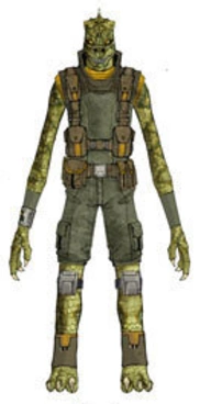 Ratter was a Trandoshan male big game hunter who was a member of a hunting guild spearheaded by the Trandoshan hunter Garnac. Like Ratter and Garnac, all of the guild's members were exclusively Trandoshan. Among the guild's trophies were many non-sentient creatures from across the galaxy. However, the guild also happened to have a knack for kidnapping sentient beings as well, who were then marooned on the[3] moon of Wasskah[4] and subsequently hunted by the Trandoshans for sport.[3]