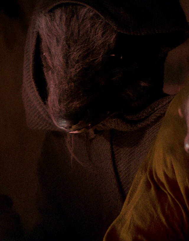 Reegesk was a Ranat thief who was lurking in Chalmun's Spaceport Cantina in Mos Eisley[1] spaceport on the planet Tatooine when the local moisture farmer Luke Skywalker entered with the Jedi Master Obi-Wan Kenobi and the droids C-3PO and R2-D2[2] in 0 BBY.[3] The ranat was sat at a table with the Jawa[2] Het Nkik[4] and the Snivvian[2] Takeel[4] when the smuggler Han Solo shot the bounty hunter Greedo, causing the trio[2] to briefly look over before going back about their business.[5] Reegesk had brown fur, black eyes, and wore a brown robe.[2]
