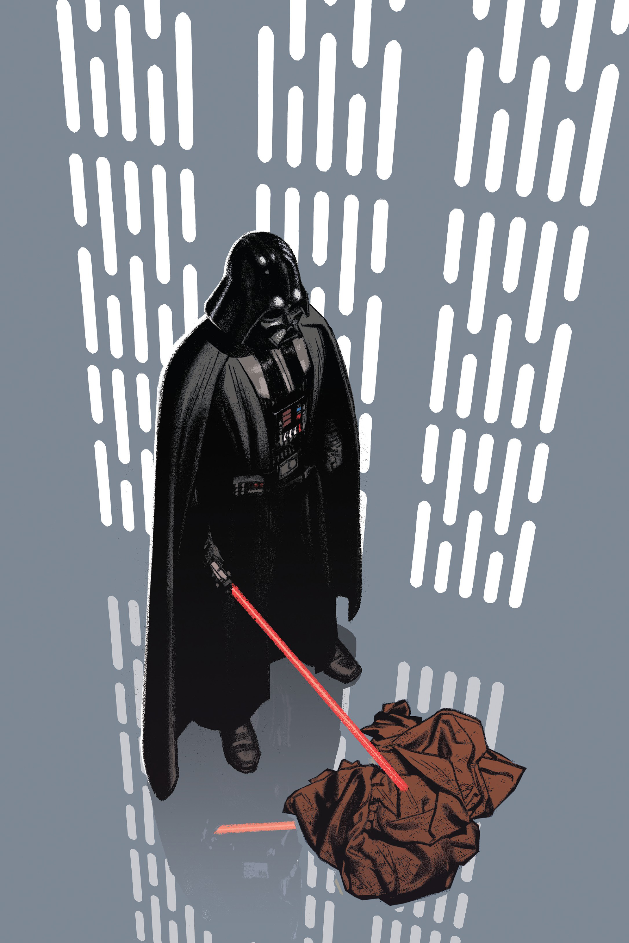 Vader stands over the empty cloak of his former master.