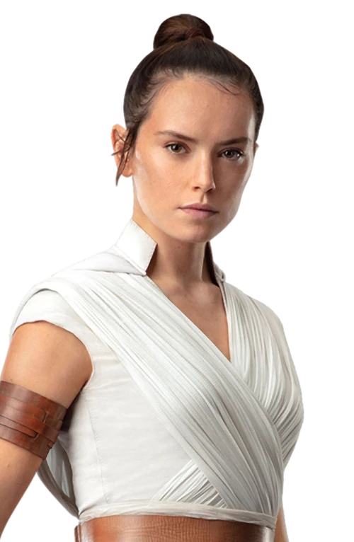 Rey Skywalker, known only as Rey throughout the First Order-Resistance War, was a human female Jedi Master who fought on the side of the Resistance during the war. A former scavenger from the planet Jakku, her life was changed by the tumultuous events of the last days of the New Republic Era. Rey's decision to help the droid BB-8 set her on a course to discovering the Force that awakened within her, leading her to seek out Jedi Master Luke Skywalker for training. Yet despite her commitment to the Jedi Order and the light side of the Force, Rey felt the pull to the dark side due to her anger and the adversarial relationship she had with Ben Solo, a fallen Jedi whom she knew as the dark warrior Kylo Ren. The unique Force-bond between them was a result of their nature as a dyad in the Force.