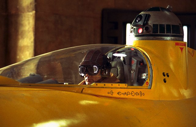 During the escape, the hyperdrive suffered enough damage to prevent the ship from finishing the journey to Coruscant. Kenobi suggested that they land on Tatooine, a desert planet, and purchase the parts needed to make repairs. Qui-Gon Jinn, the Queen (in disguise), the Gungan, Jar Jar Binks, and R2 set out to look for the parts. After a few days, they returned with both the parts and a new member of the group—nine-year-old Anakin Skywalker, an aspiring pilot. Olié took to the boy and offered him a few short lessons in starship piloting. When the Queen's pleas with the Galactic Senate to send aid to her besieged planet went unheeded, she decided to return and take matters into her own hands. Olié flew the group back to Naboo to confront their Trade Federation adversaries. Olié's skills, combined with a lessened Trade Federation space presence, allowed them to land on the planet with enough time for Amidala to contact the native Gungans to enlist their help.[5]