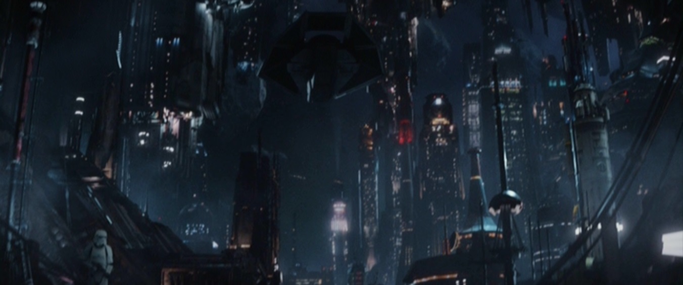 The Galactic Empire maintained a presence on Kafrene, and Imperial stormtroopers patrolled its streets. Prior to the Liberation of Erso on Wobani, the Alliance to Restore the Republic sent Cassian Andor to the Ring of Kafrene[5] to investigate why Imperial shipments of kyber crystals were being shipped across the galaxy.[7] In section nine, Cassian met with Tivik, an informant who revealed the existence of a "planet-killer"–truly the Death Star–before stormtroopers accosted the pair. Cassian shot them down, then killed Tivik when he proved a liability, before fleeing the area.[5]