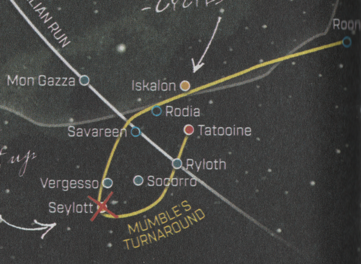 - ↑ The entry in Star Wars: Smuggler's Guide where Roon was mapped as a treasure cache is placed chronologically prior to an entry written by Tobias Beckett. Star Wars: Timelines dates Beckett's death to 10 BBY, and so his entry in the guide and those chronologically before it must all be set at some point by that date.