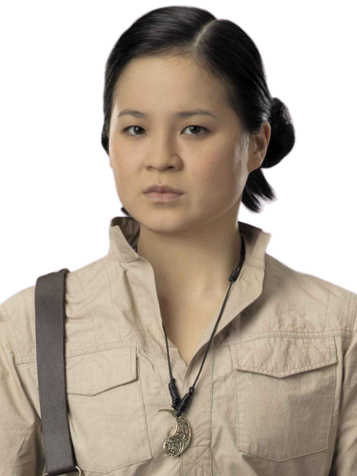 Johnson did not envision Rose with a specific ethnicity. "We saw a lot of talented actresses of a very broad range — but honestly, it was more about finding Kelly," he recalled. "There was something about Kelly that had that kind of genuine oddball nature and a real sweetness to her. She has the most open heart of anyone I've ever met and I knew that was going to shine through onscreen."[28] Kelly Marie Tran's chemistry with John Boyega, Finn's actor, solidified the director's opinion that she was perfect for the role.[22] Tran had never seen a Star Wars movie until she got the part: she was more of a fan of other series like The Lord of the Rings or Harry Potter. She attributes the fact she landed the part to this oversight, explaining "I didn't have this expectation of what I thought this person should be like; I wasn't trying to model her after someone I'd seen in a movie."[29] Carrie Fisher inspired Rose and Paige's crescent necklaces. Johnson tweeted in response to a fan inquiring about the idea that, "In rehearsals Carrie grabbed my arm and told me with great urgency that we needed 'space jewelry.' I thought that was a fabulous idea. So."[30]