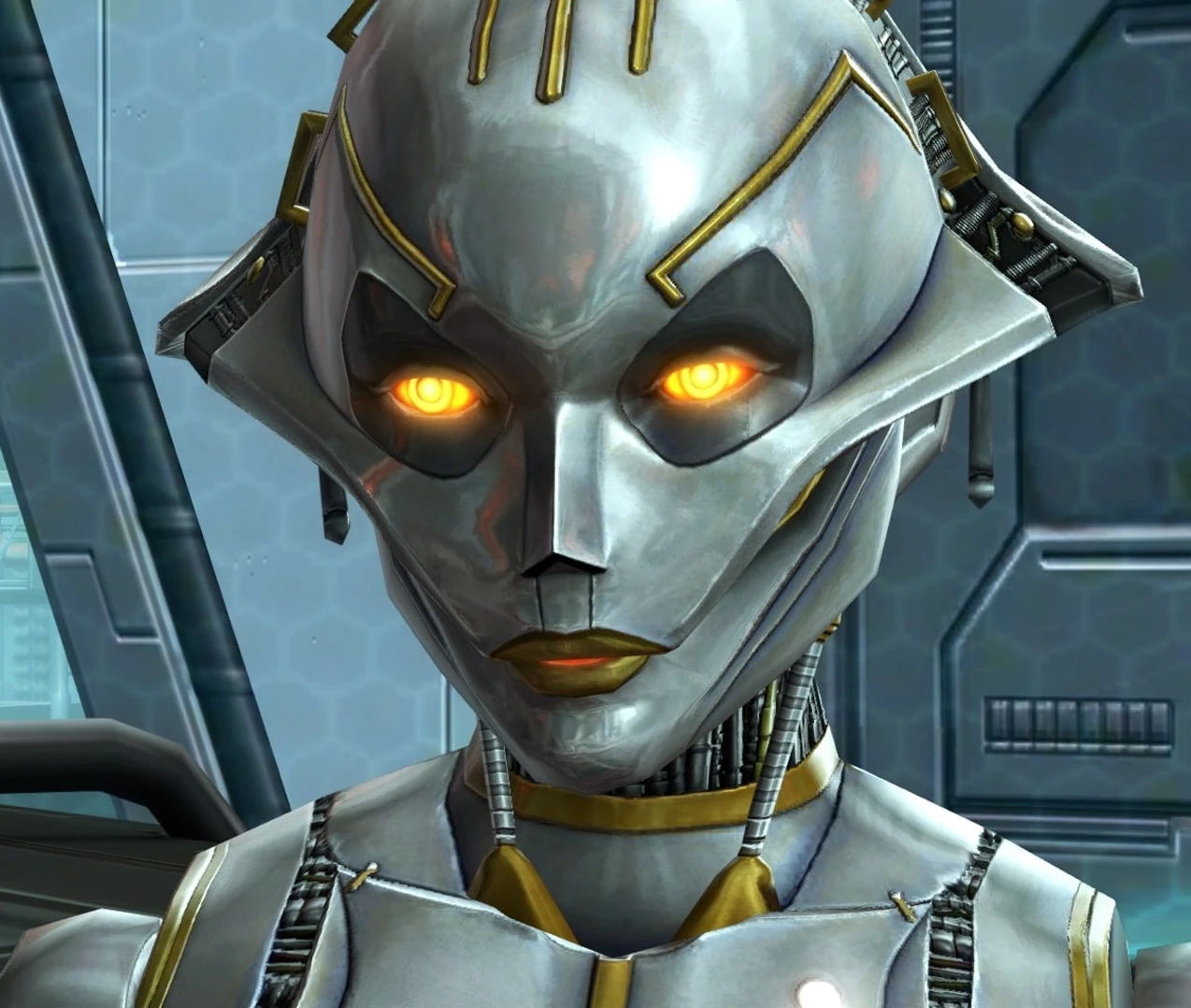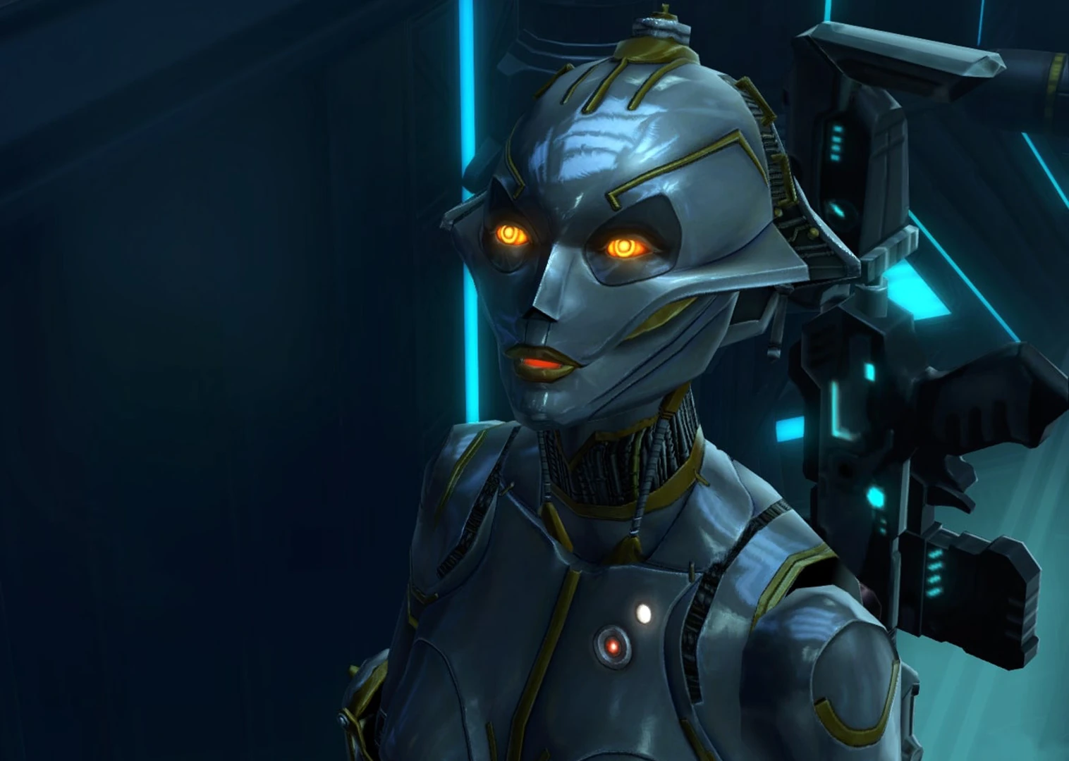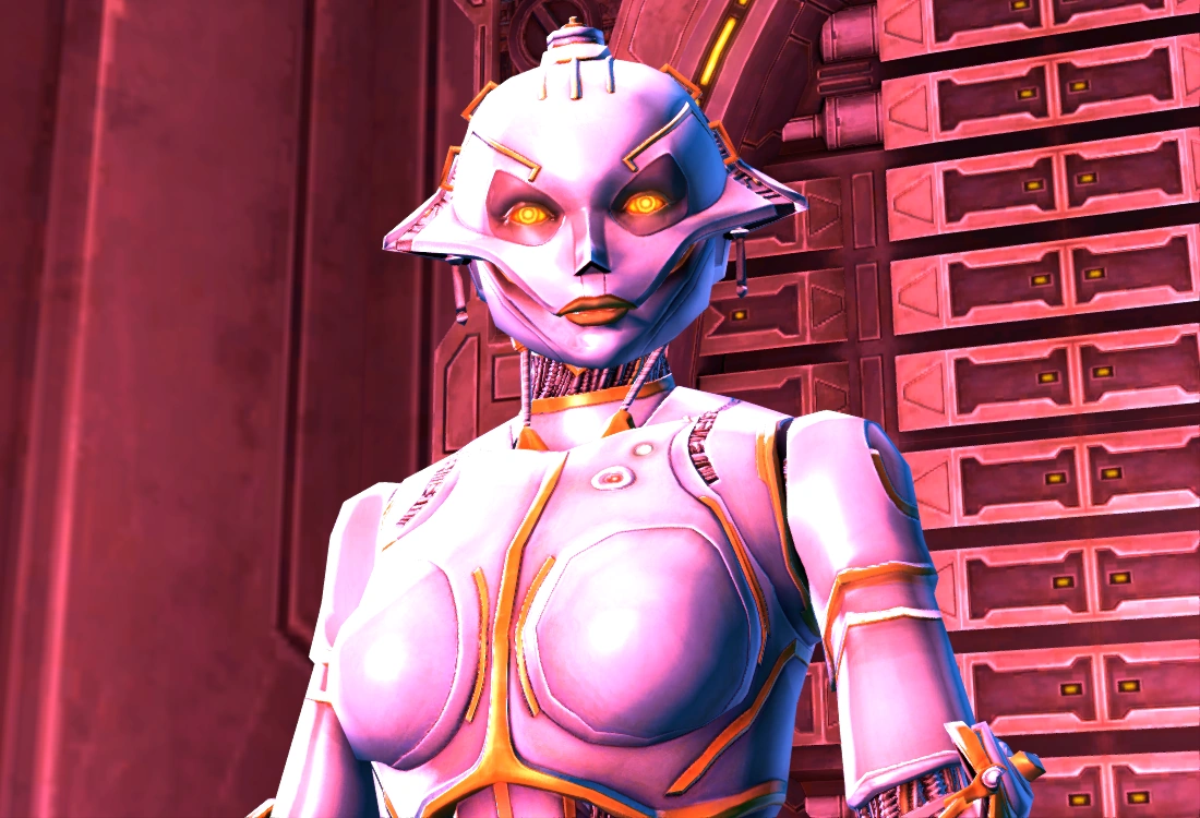 SCORPIO was an advanced artificial intelligence designed for heuristic self-improvement by Master Designer Vel Jyc Boer on Iokath in the years before a civil war broke on the artificial world and caused its engineers to abandon their creations in Wild Space in an attempt to save their lives. SCORPIO was eventually discovered and used as a mindless droid for over 150 years, after which her continued self-improvement granted her true sentience. Entering into a partnership with Star Cabal, she willingly became the guardian of Megasecurity Ward 23 on Belsavis in return for access to rare technology. Over centuries she gained access to systems of Republic's Belsavis prison as SCORPIO Sanctions, disengaged from her droid body. During the Galactic War Imperial Intelligence agent Cipher Nine broke into the Ward in the Hunt for the Star Cabal, overpowering SCORPIO and adding hardware restrictions that prevented her from causing the Imperial Agent harm. SCORPIO revealed her knowledge of the Star Cabal to the Imperial Intelligence and eventually came to appreciate Cipher's company, as the agent aided in her mission of constant self-evolution.