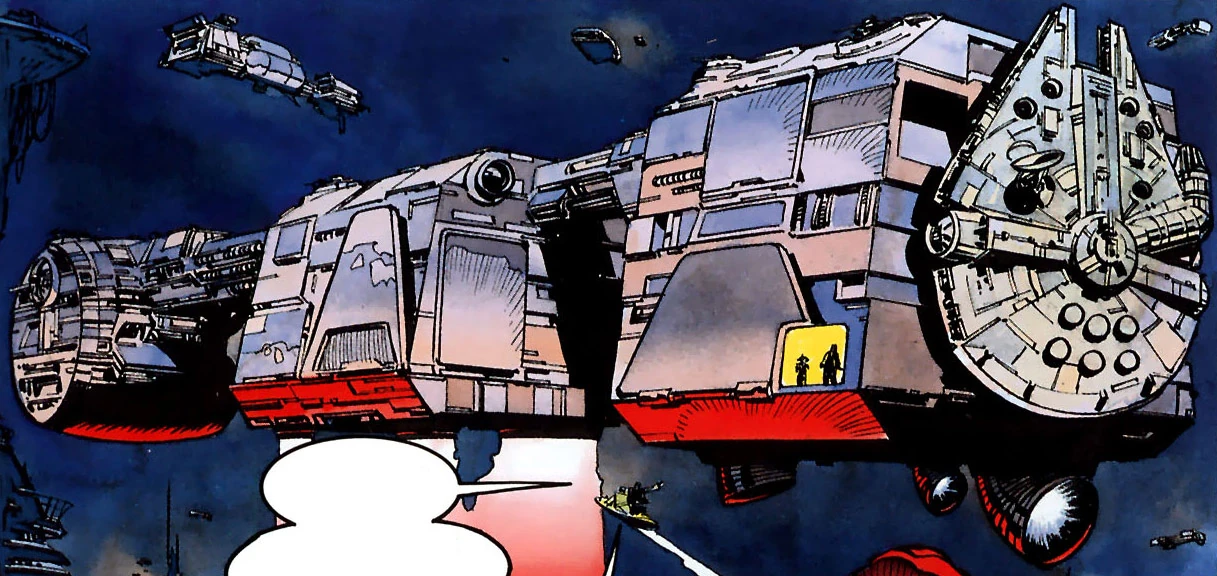 Her first time on Nar Shaddaa was eventful, with her getting into a fight with a smuggler named "Jump," who tried to romance her at first, but then tried to be rough; his roughness only got him a dislocated shoulder. Tweaking out her vessel, the Rimrunner, Zend began repaying the debt by smuggling with Han Solo.[3]