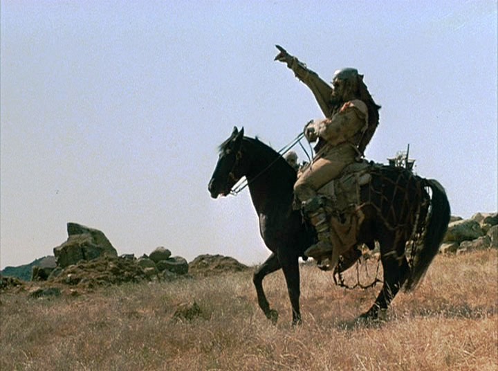 The Sanyassans of Endor domesticated local creatures such as horses and large reptilian blurrgs to use as beast of burden or mounts.[1] The Marauders' leader was the self-appointed King Terak, who ruled over the others by virtue of his size and strength. He was assisted by Charal, a rogue Dathomiri Nightsister who could turn into a raven thanks to her magic ring.[2] The commander of the Marauder troops was General Yavid, a dwarf Sanyassan who formulated the battle strategies that kept the Marauders' lands from being overrun.[1] The Marauders were perpetual enemies of the diminutive Ewoks, a species native to Endor whose villages the Marauders frequently raided. At some point, they were also enemies of other local species like the Phlogs and the Duloks. They clashed with Morag the Tulgah witch, although Yavid orchestrated a tentative peace with her at some point.[10]