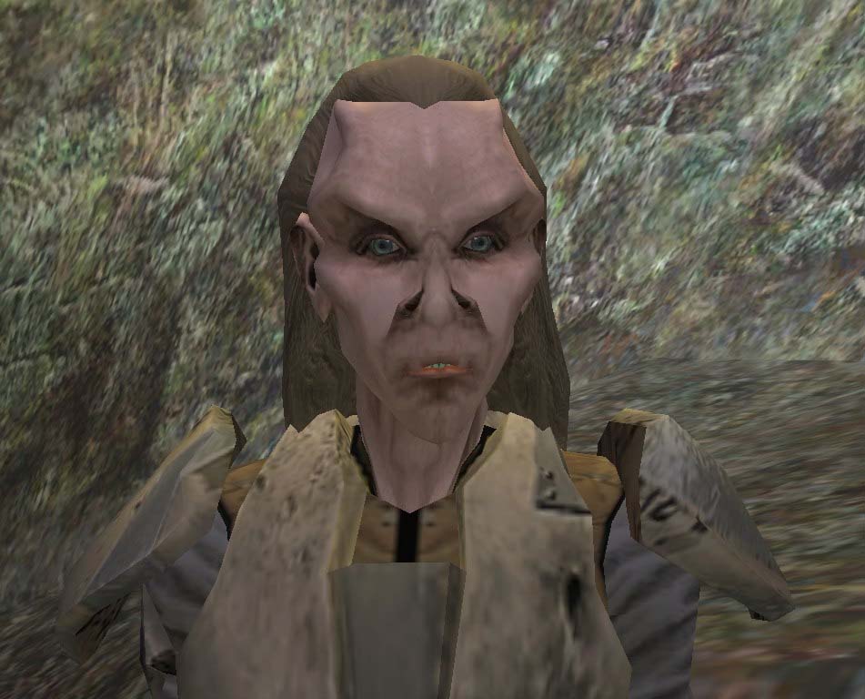 The species had two sexes, male and female; Sexual dimorphism manifested, predominantly, in the presence of pronounced breasts in females. Sanyassan women also tended to have smoother skin and did not grow facial hair.[5] Considered children until the age of eight (at which point they entered a brief adolescent period), Sanyassans attained “young adulthood” when they turned thirteen. At fourteen, they grew out of adolescence and lived out their adulthood for twenty-five years. At forty, a Sanyassan was considered middle-aged, with he or she being viewed as “elderly” beyond the age of seventy.[7] Of course, super centenarians were not uncommon, and Sanyassans could maintain their warrior prowess even into their latter years; the Sanyassan Marauders who shipwrecked on Endor around 96 BBY were still alive a standard century later.[1]